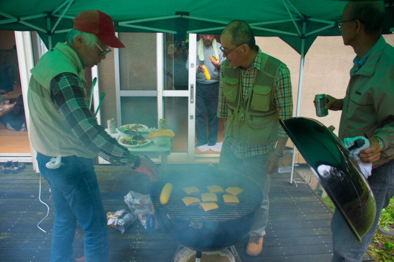 8月30日、富士見町の防災訓練に引き続き、恒例のバーべキュー会を行いました。今回の参加者は30名超、雨がちの空模様にも負けず、大いに盛り上がりました。