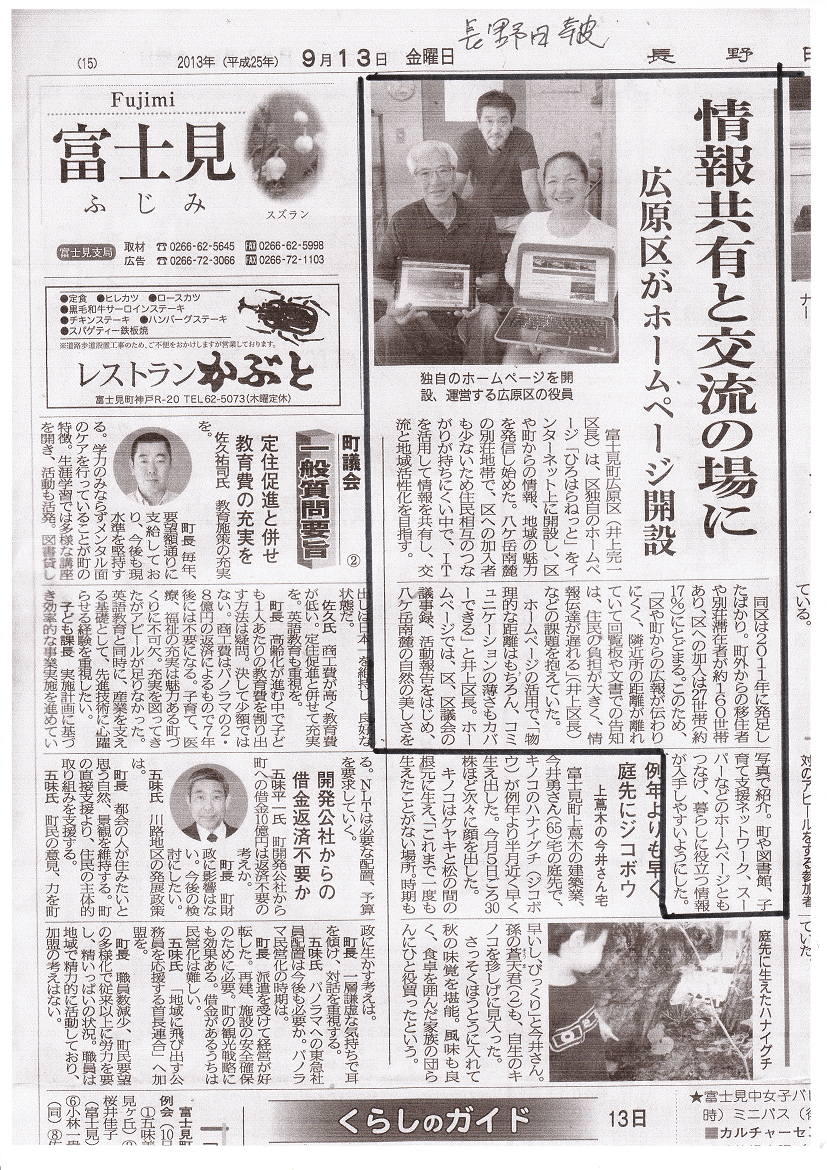 本HPが長野日報で紹介されました(平成25年9月13日)